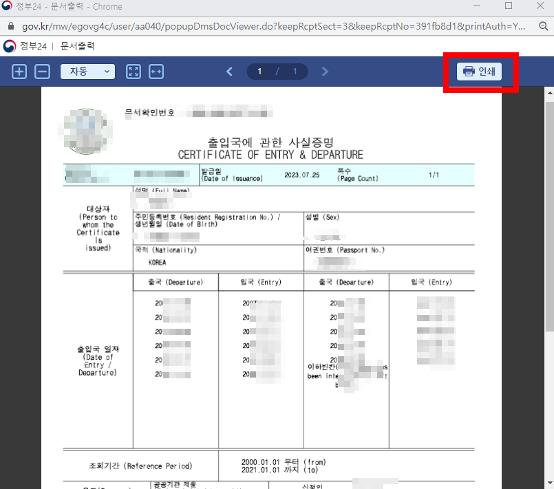 참고로 인터넷발급으로 하실 경우에는 발급 비용이 무료로 진행이 가능하며 방문 시에는 일정 금액 수수료(2,000원)가 발생할 수 있으니 되도록 집에서 편하게 출입국사실증명서 인터넷발급받으시는 것을 추천드립니다.